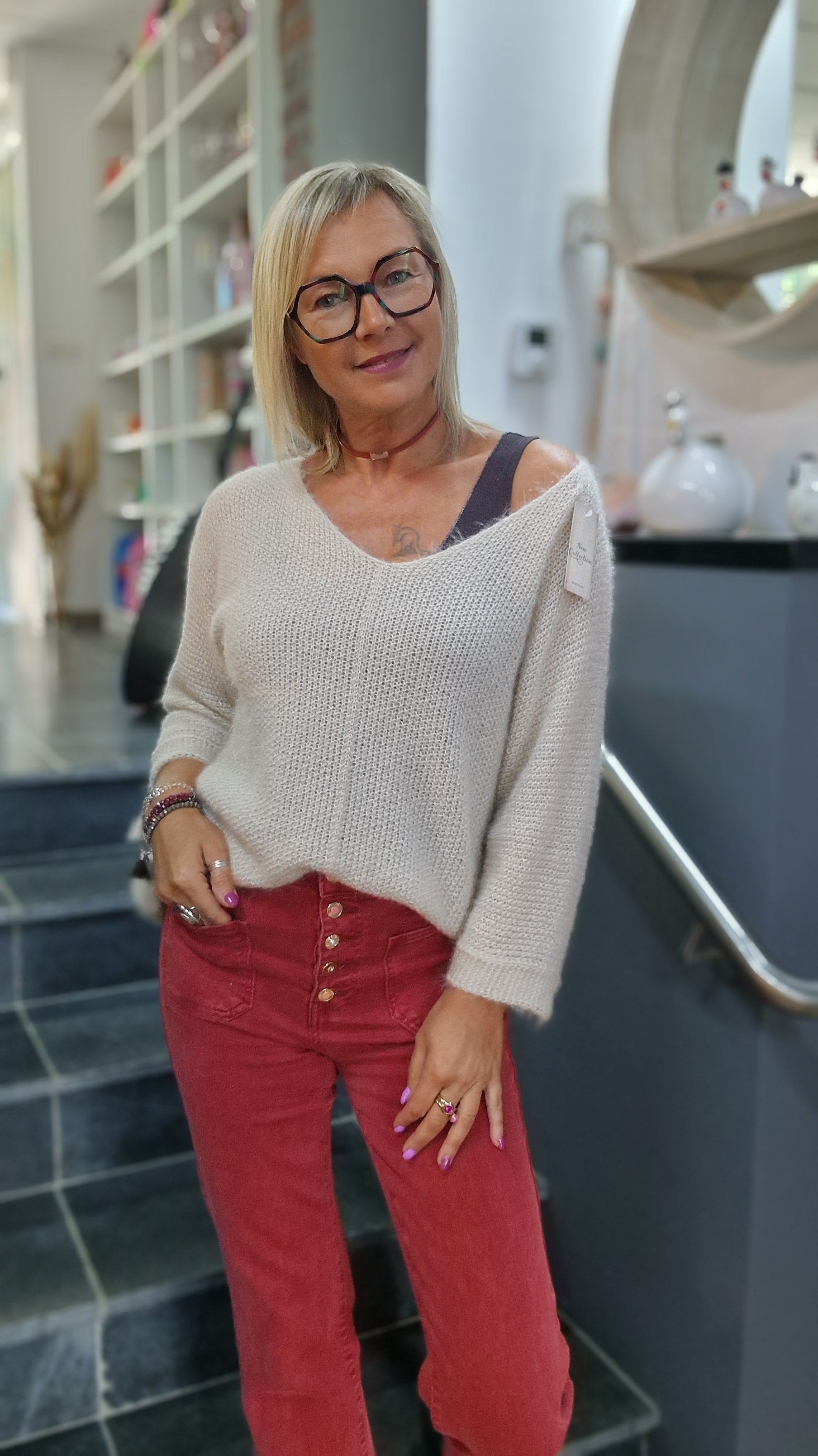 Pull en maille. Coloris mode agrémenté d'un fil brillant. Très doux.