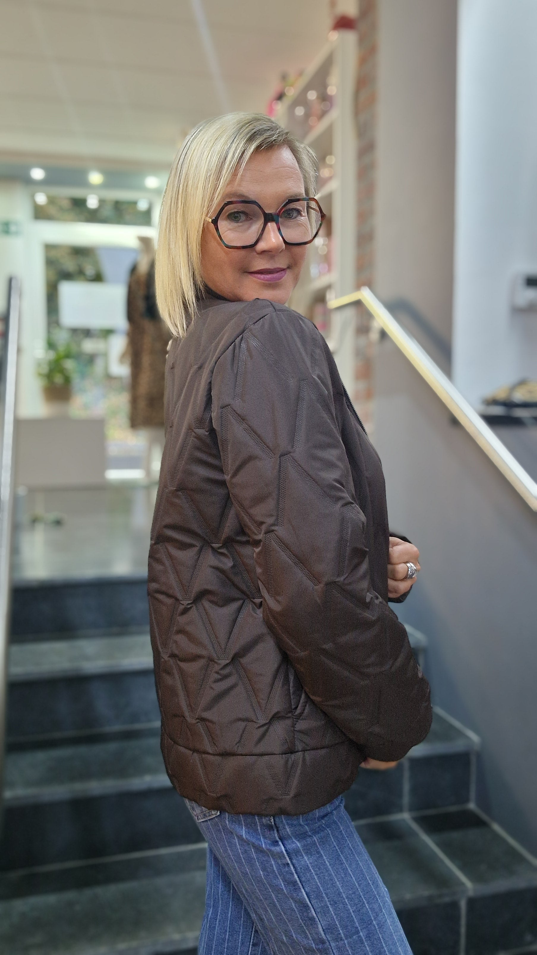 Veste mi-saison. Tissu légèrement satiné, surpiqué (losanges).